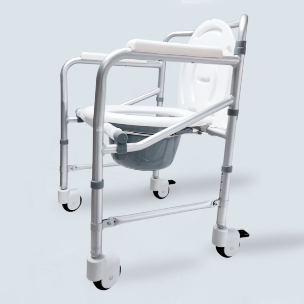 Cadeira higiênica indicada para usuários com dificuldade de locomoção, auxílio para banho ou sanitário. Pela praticidade de ser dobrável, pode ser facilmente levada em veículos, promovendo conforto ao usuário da cadeira em qualquer lugar.