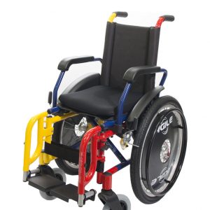 rodas traseiras “quick release”, freios bilaterais reguláveis, protetor de roupa com aba, apoio de pé articulável, rebatível, removível e regulável em altura. Apoio de braço escamoteável, placa de regulagem do centro de gravidade, roda anti tombo.